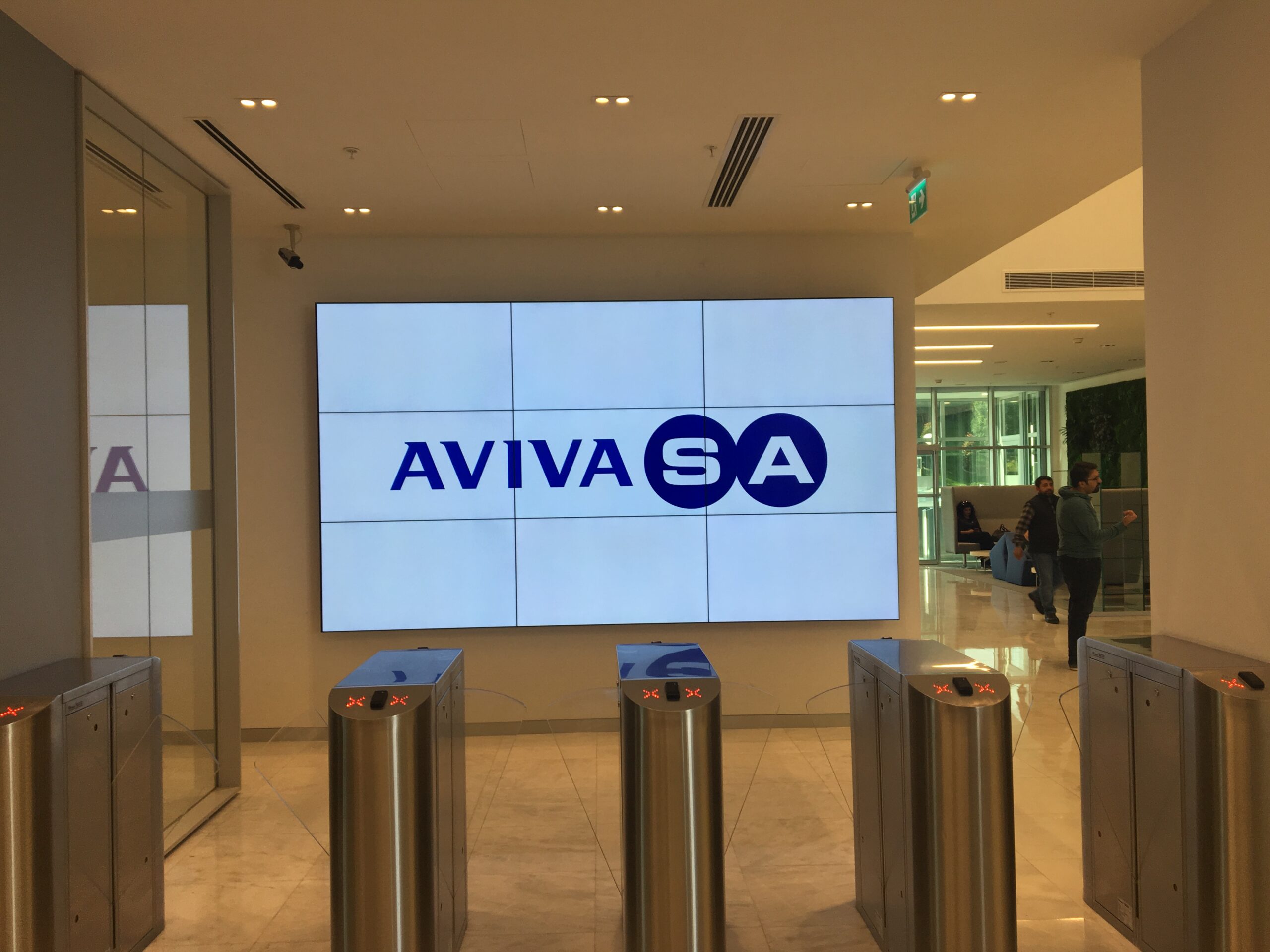 Bina girişinde turnike geçişlerinin hemen arkasındaki duvara tüm personel ve ziyaretçilerin görebileceği 3X3 formatta bir videowall kuruldu.Giriş katta yer alan focus box isimli odalarda gerektiğinde bilgisayar bağlayıp sunum yapabilmek için ekranlar konumlandırıldı.Toplantı salonları yoğun olarak kullanıldığından, toplantı rezervasyonlarını bir düzen içinde yürütebilmek için, kapı girişlerinde 10” ekranlar konumlandırıldı. Ayrıca toplantı odalarına 55” ve 65” ebatlarında ekranlar konumlandırıldı.Açık ofis alanlarında tüm personele hitap edecek noktalarda 65” digital signage ekranları konumlandırıldı.Bölge Müdürlük ofislerinde de digital signage ve sunum ekranları kuruldu.