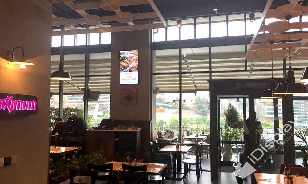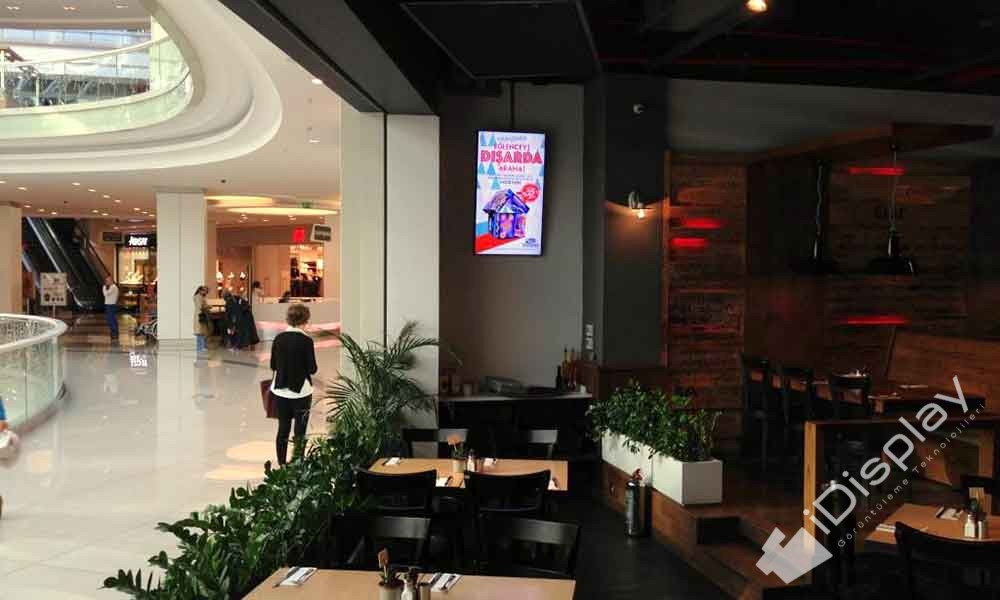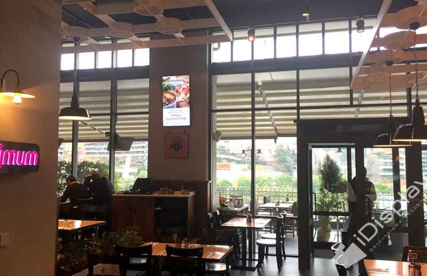 iDisplay digital signage yazılım çözümü PlatPlay ile LED LCD ekranlarda ürün, menü ve hizmetleri tanıtan resim ve video gibi içeriklerin yayımlanması sağlandı. Yüksek çözünürlüklü parlak ekranlarda çok daha profesyonel görünüm kazanan menü ve hizmet içerikleri, istenen zamanda istenen sıralama ile görüntülenebilir oldu.