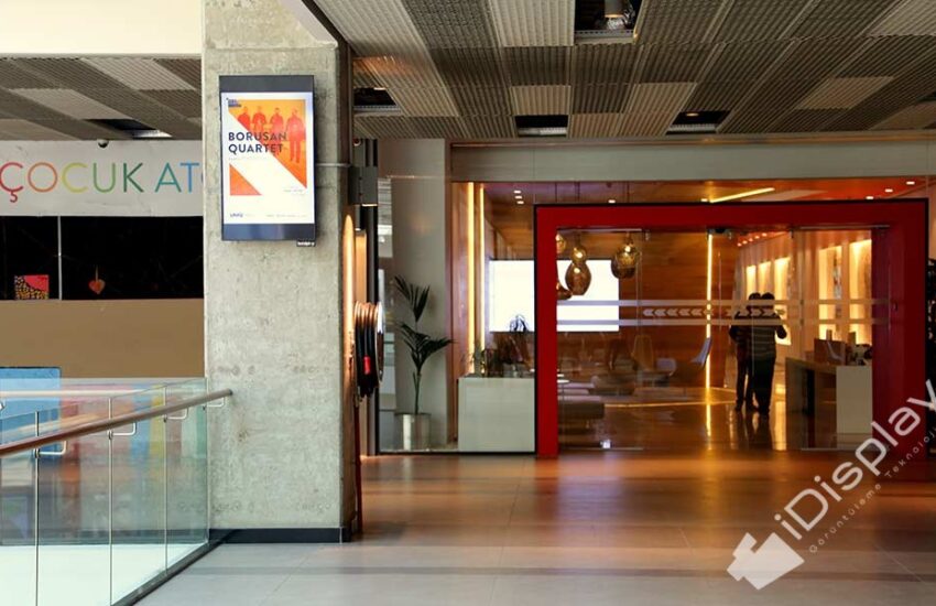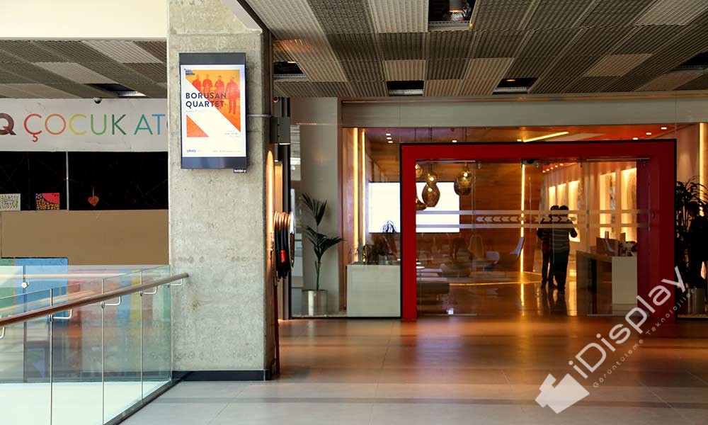 Endüstriyel sınıf 40” yüksek çözünürlükteki parlak ekranlar, farklı noktalardaki yönlendirme alanlarına konumlandırılırken, karşılama alanlarına da yine endüstriyel sınıf 46” yüksek çözünürlükte parlak ekranlarla oluşturulan iDisplay Digital Kiosklar yerleştirildi. Bu ekranlar merkezi olarak uzaktan yönetilmekte ve içerik olarak etkinlik bilgileri ve marka tanıtımları yayınlanmaktadır.